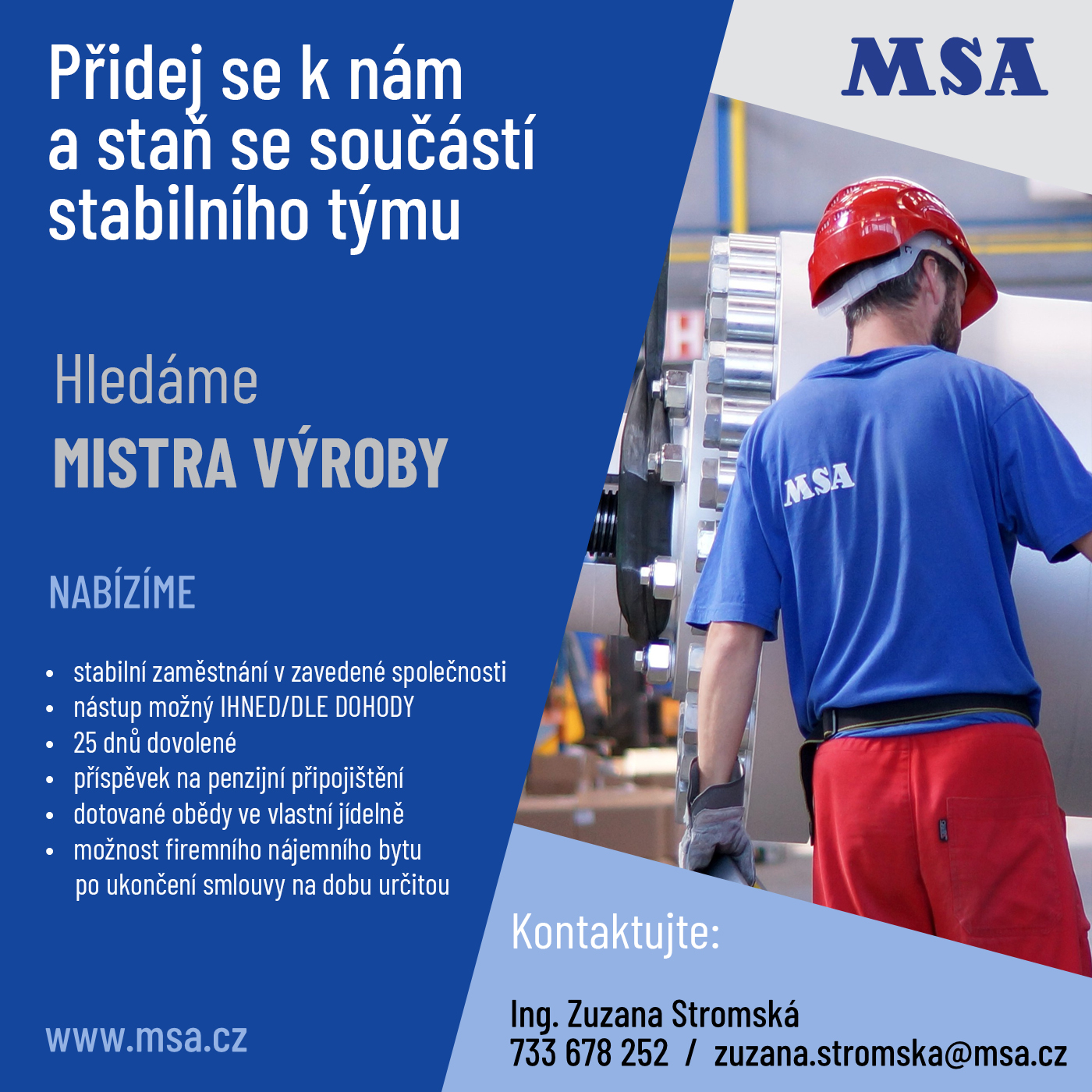 Zaujala Vás nabídka? Pošlete nám svůj životopis na zuzana.stromska@msa.cz. Těšíme se na Vás!